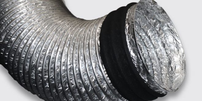 کانال فلکسیبل PL ساخته شده از یک لایه (داخلی) آلومینیوم دو جداره و یک لایه (میانی) پلی استرفشرده (مشکی) به عنوان عایق حرارتی، یک لایه (خارجی) روکش محافظ از جنس آلومینیوم دو لایه و فنر فولادی